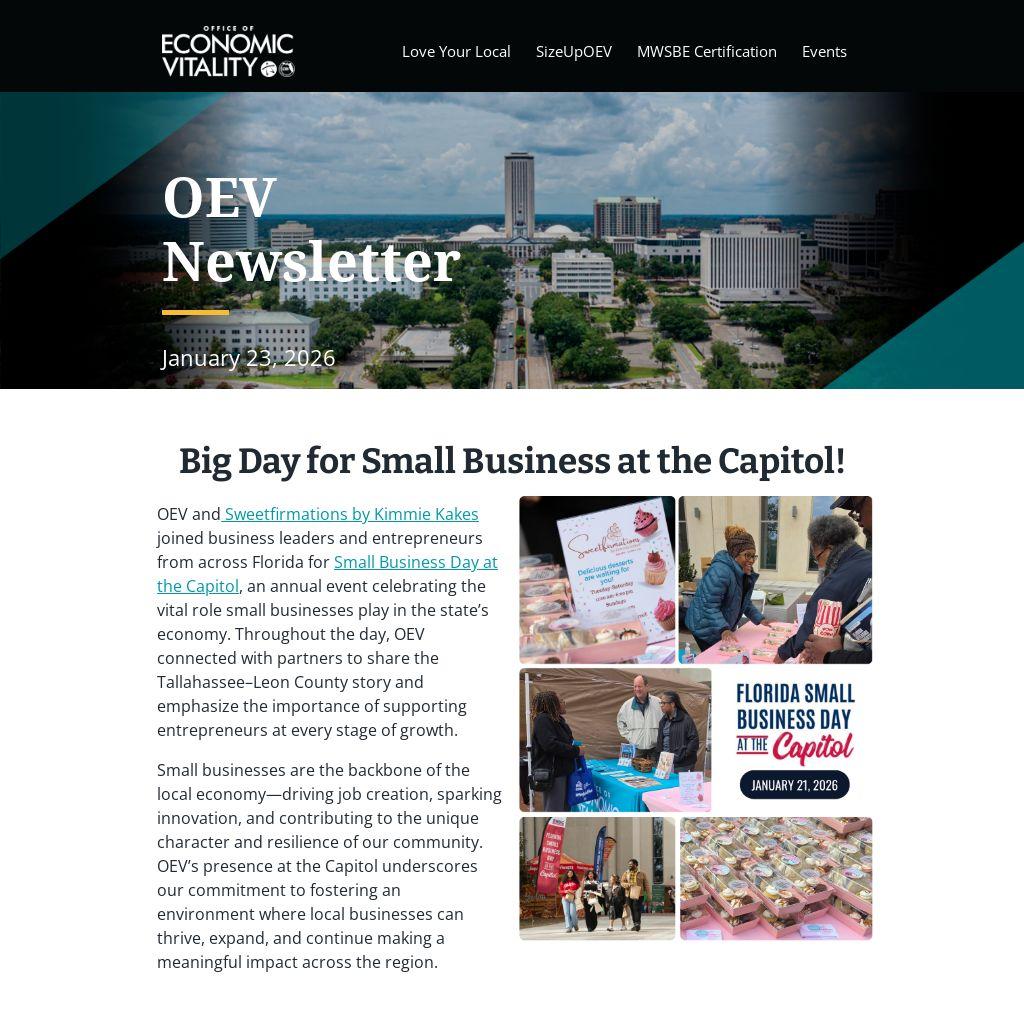 Delve into past issues of the OEV Newsletter to catch up on updates, insights, economic development initiatives, programs, and opportunities in Tallahassee-Leon County!