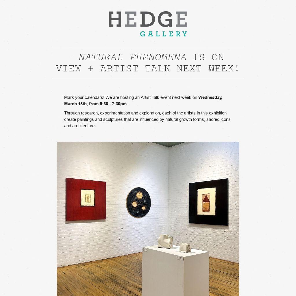 Our Artist Talk events are perfect opportunities to view the exhibit, and discuss the work with the artists in open conversation. If you haven't been able to view Natural Phenomena, or have questions about the materials and processes, we hope you'll consider attending!