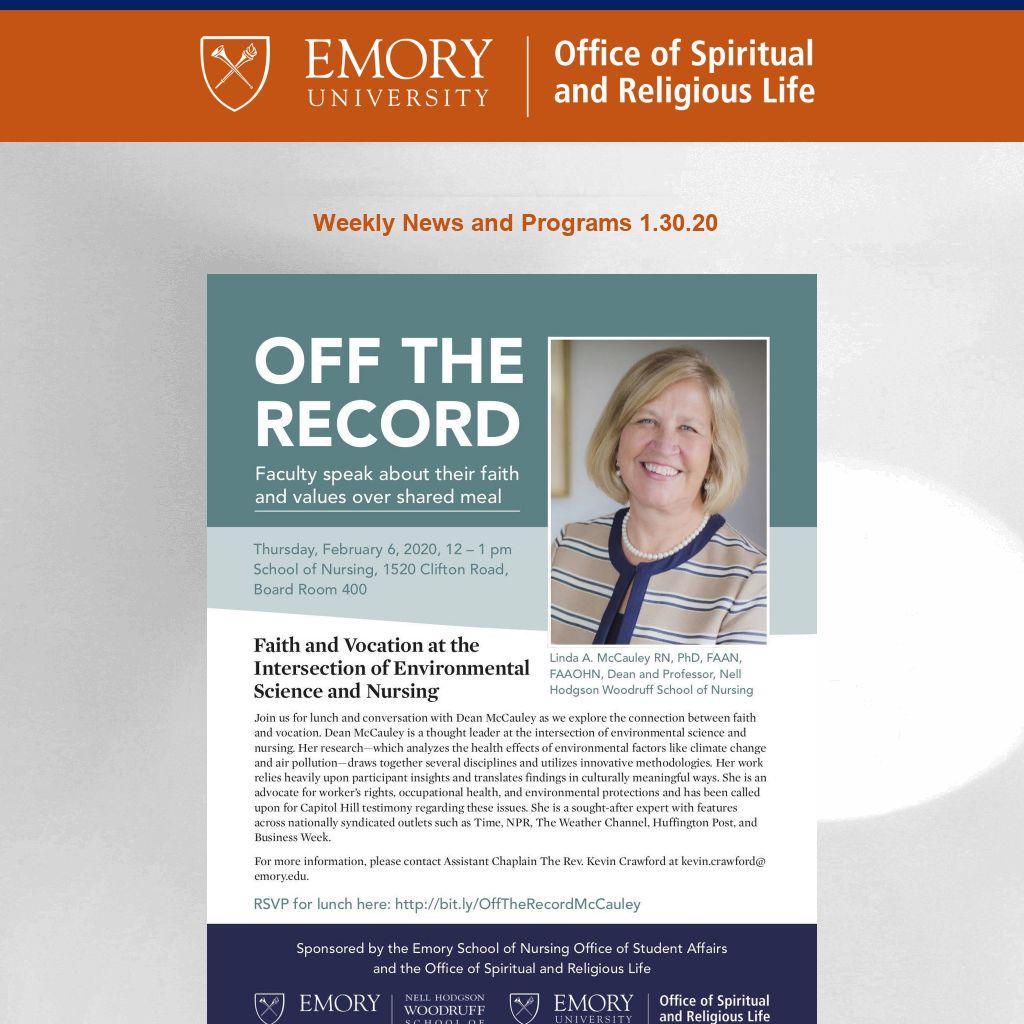 Emory OSRL Enews is published weekly during term by the Emory University Office of Spiritual and Religious Life covering Atlanta-campus programs. For Oxford College spiritual life, please click here. To submit information or to update your preferences, please contact religiouslife@emory.edu.