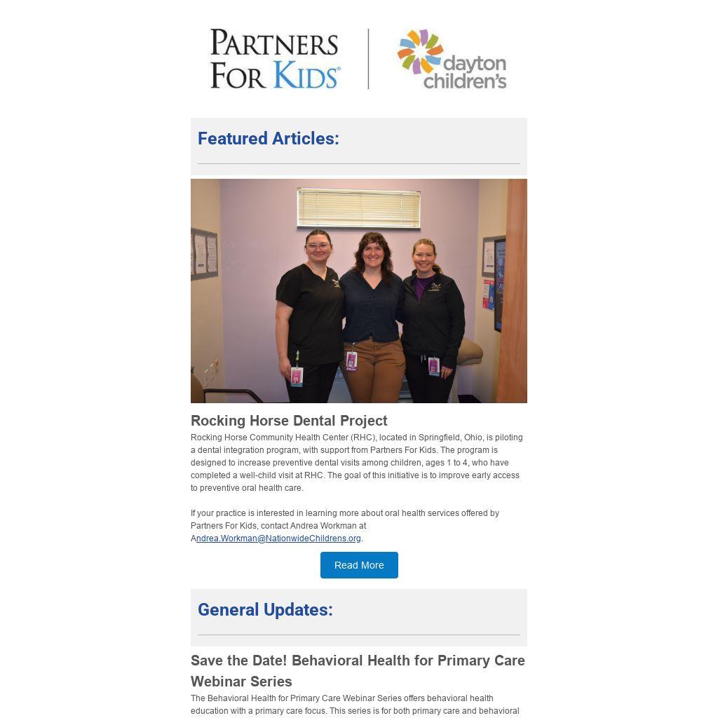 If you have questions regarding any of the information in this newsletter or suggestions regarding newsletter content that would be useful to your practice, please contact us at Email: PFKProRelations@childrensdayton.org.