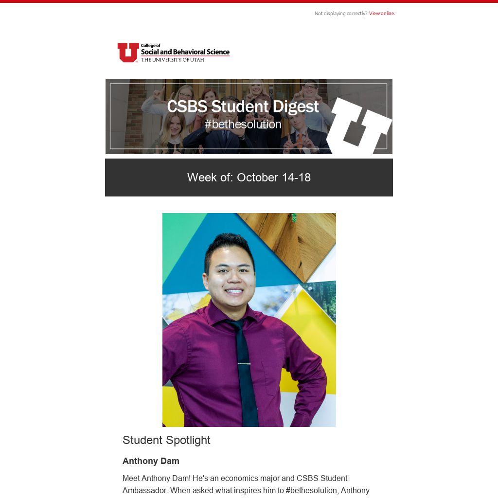 Meet Anthony Dam! He's an economics major and CSBS Student Ambassador. When asked what inspires him to #bethesolution, Anthony said, "'Knowledge is power' is one of my favorite mottos in life. I have a goal to inspire others in pursuing and reigniting their passions in life through education. I believe that we can focus on creating solutions for all the problems within our society by enabling, influencing, and supporting others in their endeavors. I want to be able to leave a positive impact on the those around me, and assist them in achieving their goals."