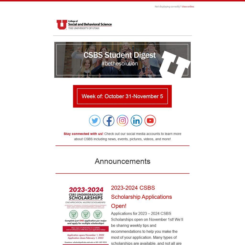 CSBS Scholarship Applications. Student Ambassador Applications.