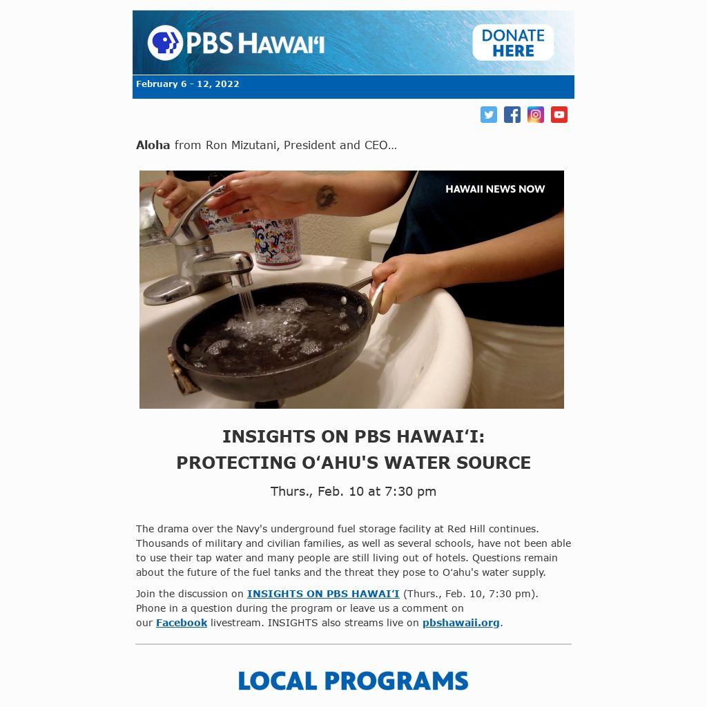 It's been said, "a plan without action, is not a plan, it is a speech." I hate speeches. We will continue to consistently ask ourselves: Are we being balanced and fair? Are we pushing an agenda? Are we providing a voice for the voiceless? Are we listening? If, and when we fail or fall short, we will own it, address it and fix it. Without taking those actions, we lose trust. In this week's INSIGHTS ON PBS HAWAIʻI: PROTECTING OʻAHU’S WATER SOURCE, we made every effort to invite all sides of this complexed and important community issue. Some agreed to participate, others declined. That's not uncommon. Do we proceed with a program without all sides at the table? In this case, we emphatically said yes. Our job now is to execute with integrity, balance and fairness… and we will. Thank you for your trust…
