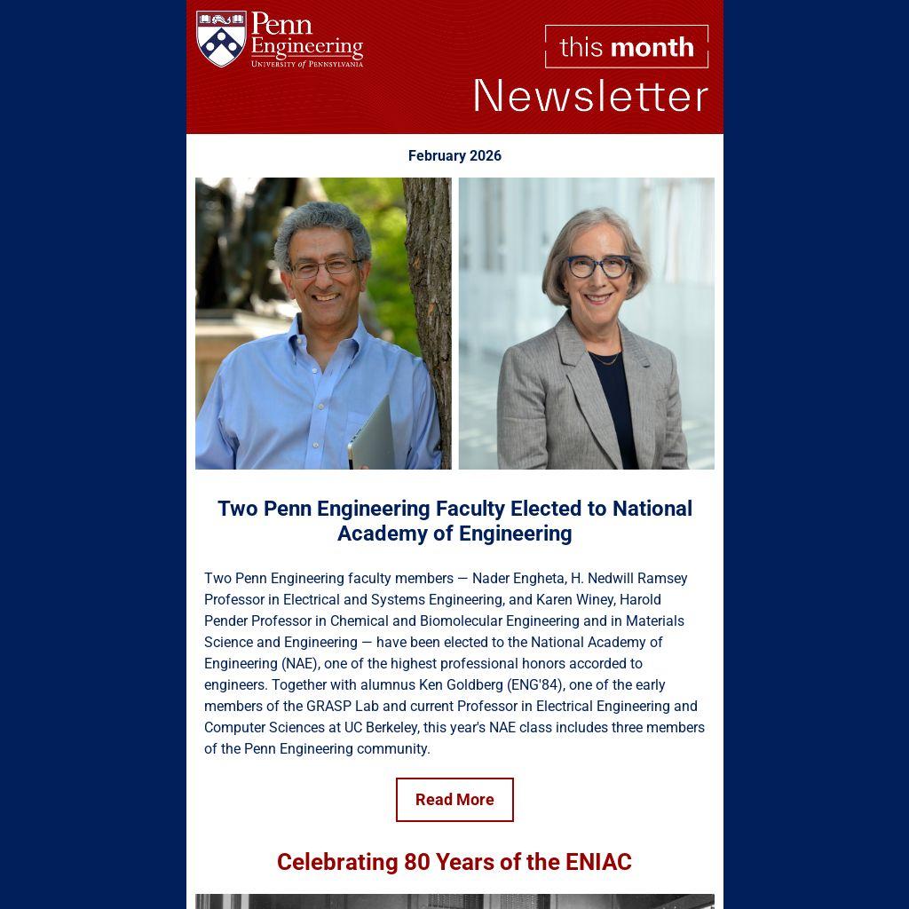 Two Penn Engineering Faculty Elected to National Academy of Engineering |