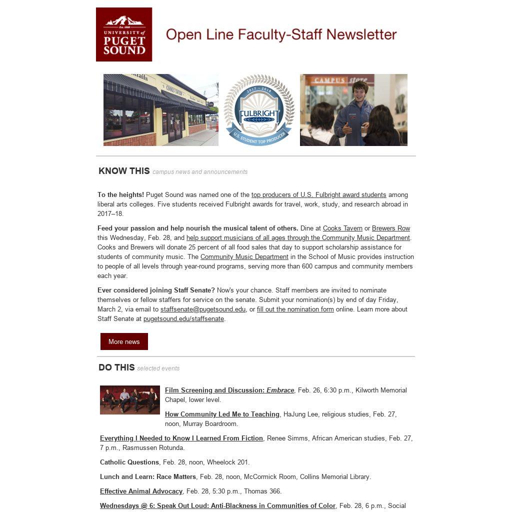 Catholic Questions, Feb. 28, noon, Wheelock 201. Lunch and Learn: Race Matters, Feb. 28, noon, McCormick Room, Collins Memorial Library. Waxy Wednesdays, Feb. 28, 7 p.m., The Expeditionary.