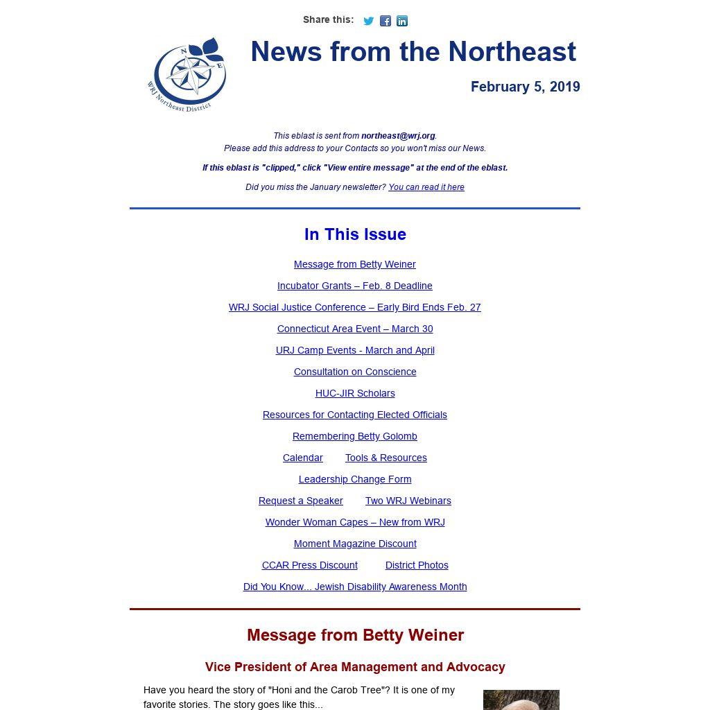 This eblast is sent from northeast@wrj.org.