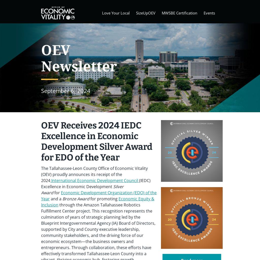 Delve into past issues of the OEV Newsletter to catch up on updates, insights, economic development initiatives, programs, and opportunities in Tallahassee-Leon County!