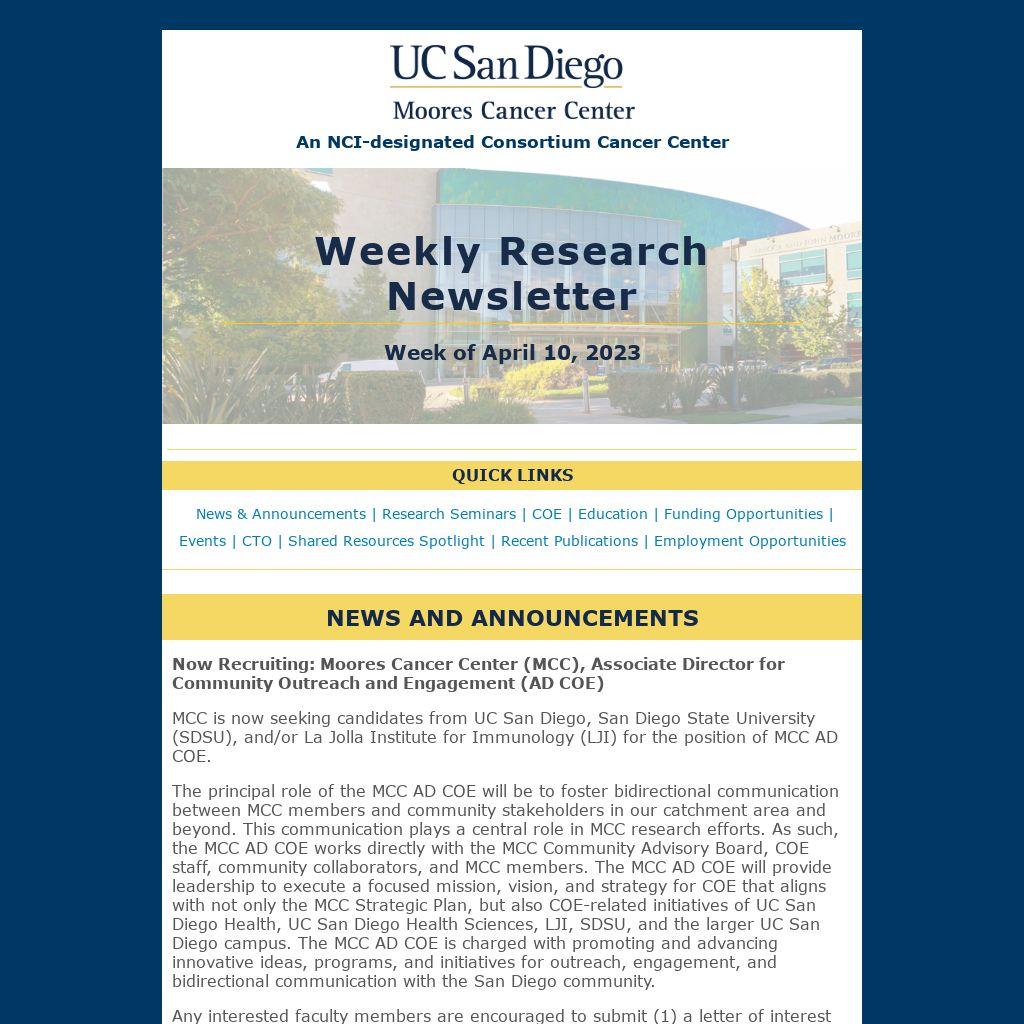 Now Recruiting: Moores Cancer Center (MCC), Associate Director for Community Outreach and Engagement (AD COE)