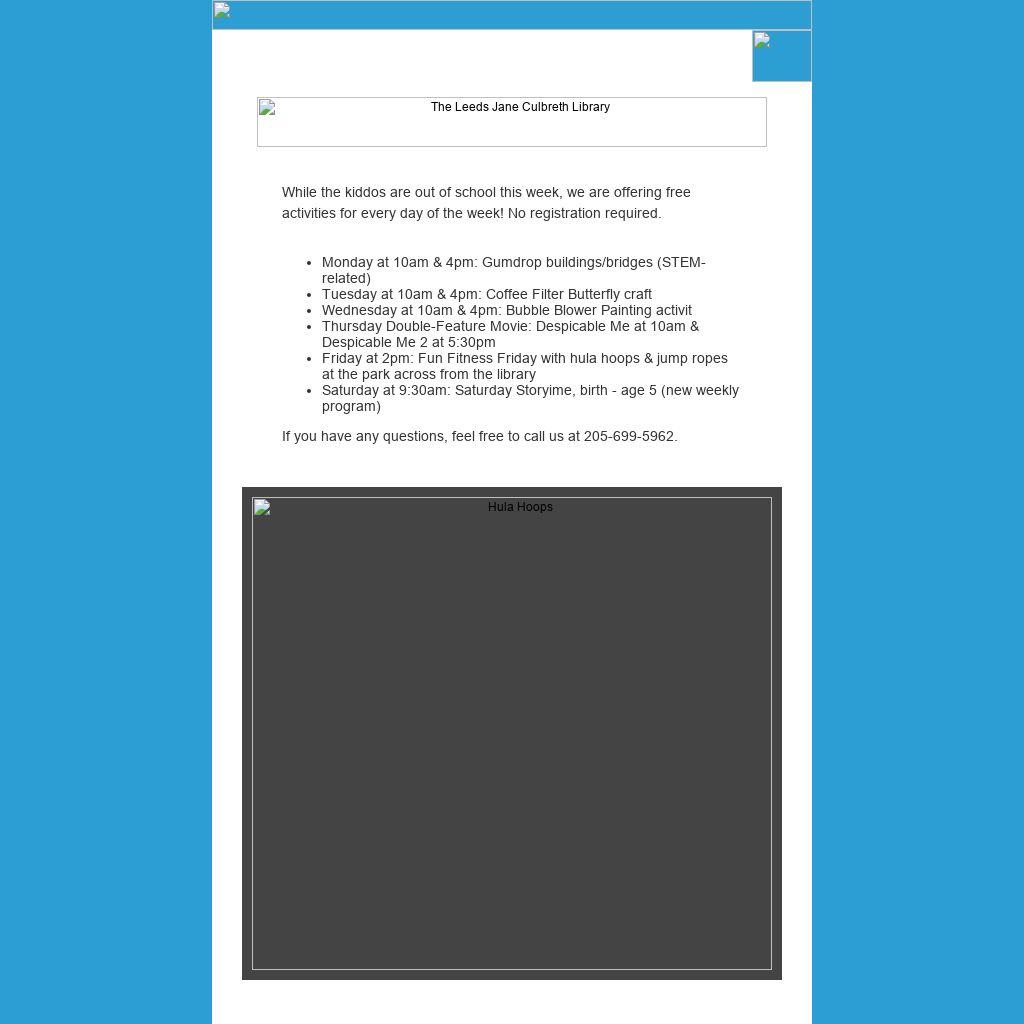 Friday at 2pm: Fun Fitness Friday with hula hoops & jump ropes at the park across from the library