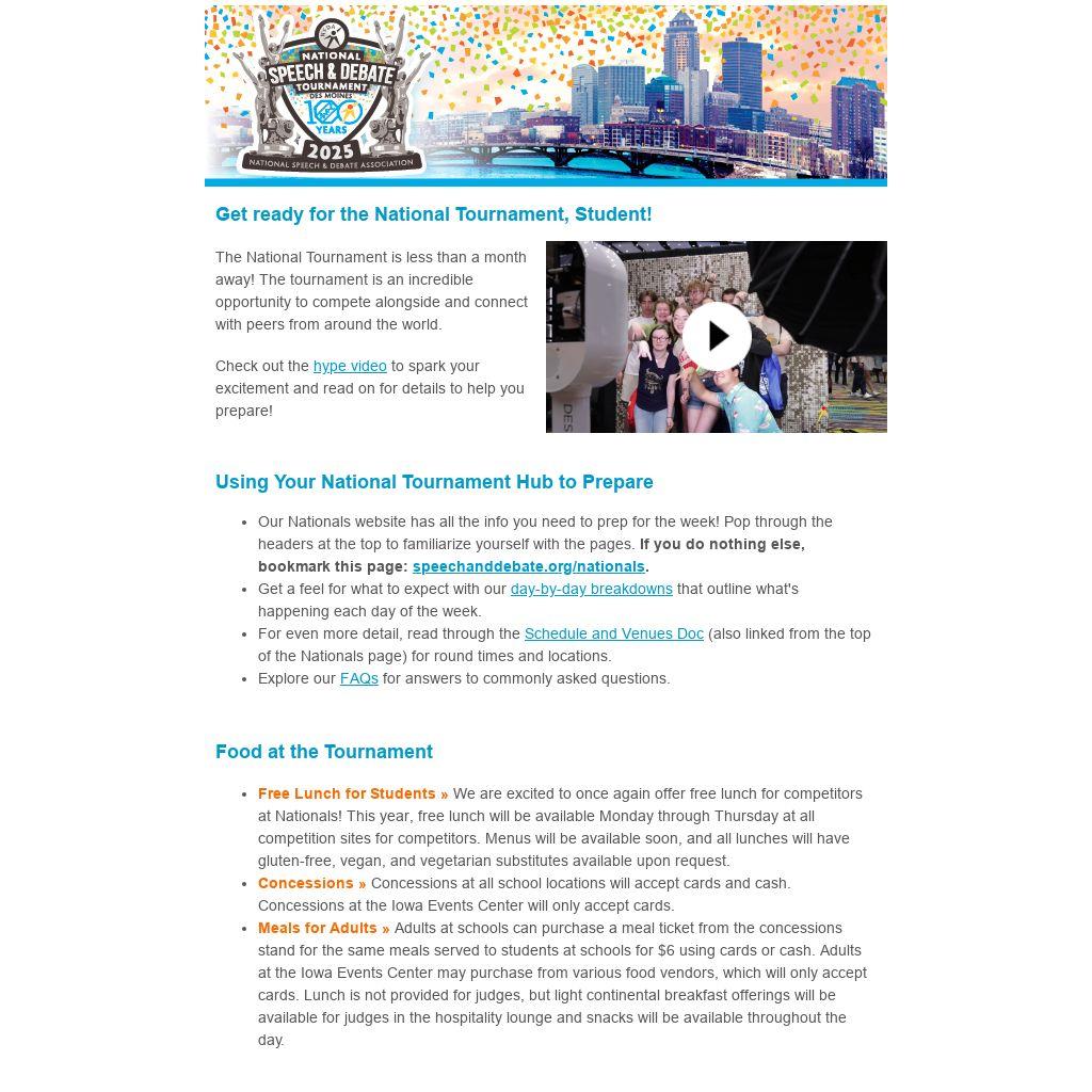 The National Tournament is less than a month away! The tournament is an incredible opportunity to compete alongside and connect with peers from around the world.