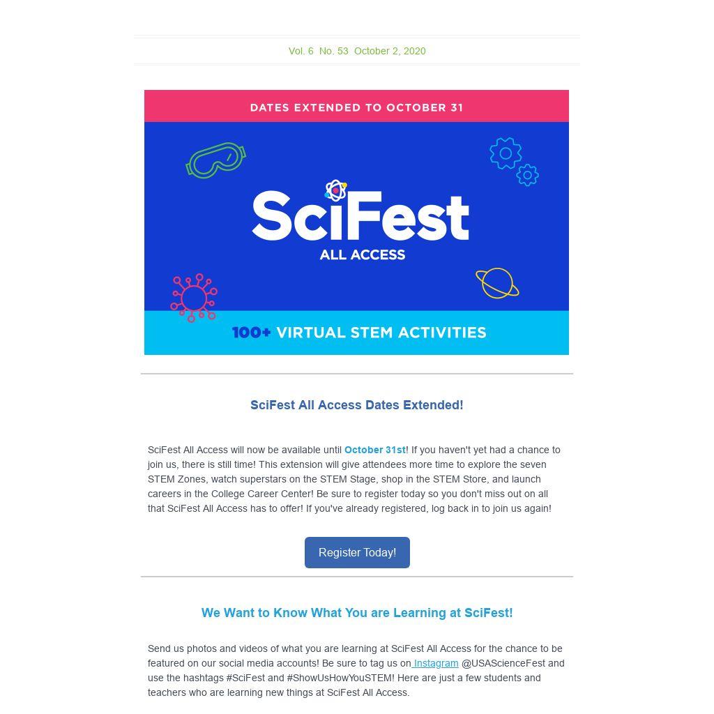 SciFest All Access Dates Extended!