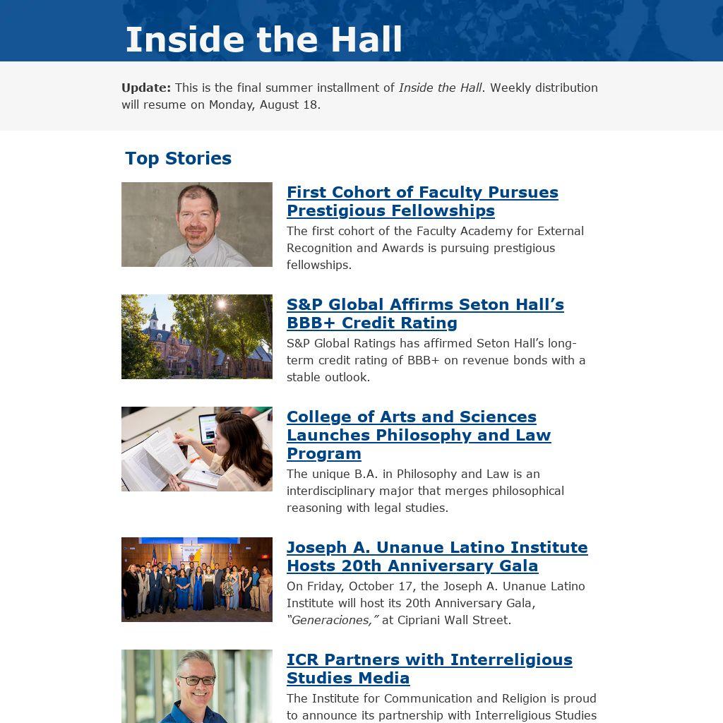 Update: This is the final summer installment of Inside the Hall. Weekly distribution will resume on Monday, August 18.