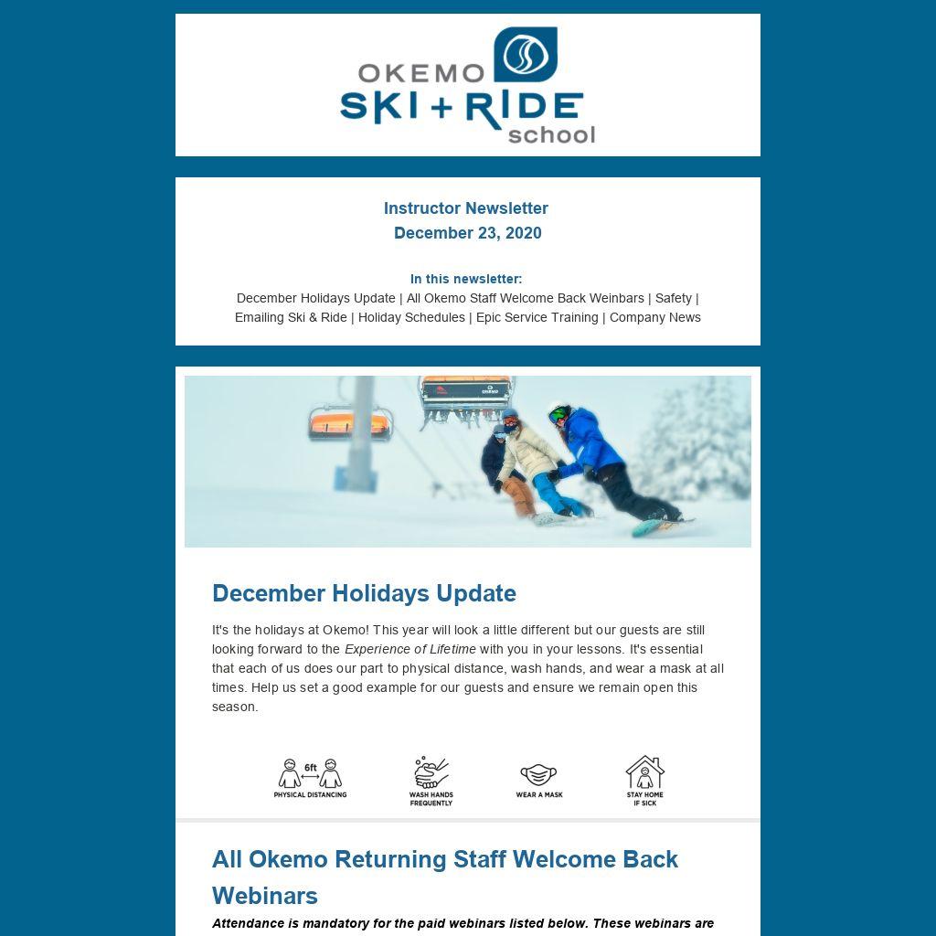 Knowing this upcoming season will be like no other, the Okemo Senior Leadership Team invites you to a 60-minute welcome session designed to provide information on our resort priorities and accomplishments, and to hear directly from our resort leaders about their journey to this unique moment.