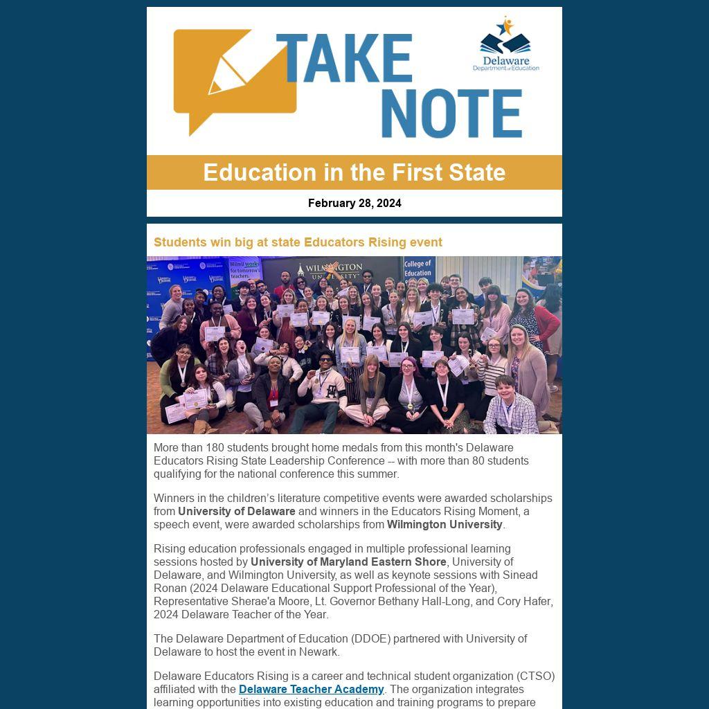 More than 180 students brought home medals from this month's Delaware Educators Rising State Leadership Conference -- with more than 80 students qualifying for the national conference this summer.