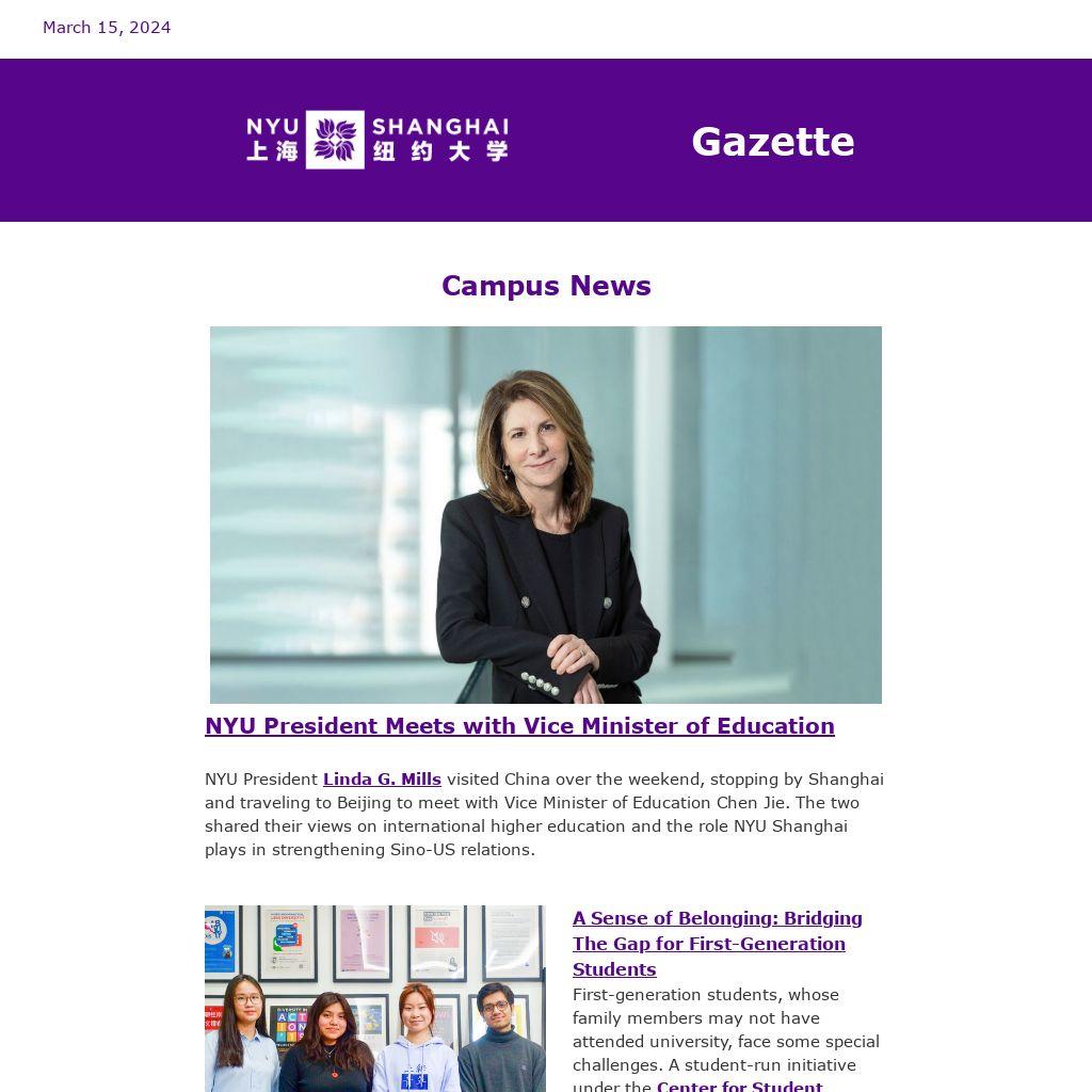 For a complete listing of events at NYU Shanghai, check out the Weekly Events Newsletter, delivered to your inbox every Monday when school is in session. If you wish to highlight your event in the Weekly Events Newsletter, upload your event to Engage no later than the Thursday before the Monday newsletter.