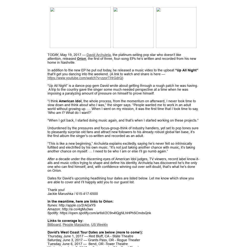 TODAY, May 19, 2017 — David Archuleta, the platinum-selling pop star who doesn’t like