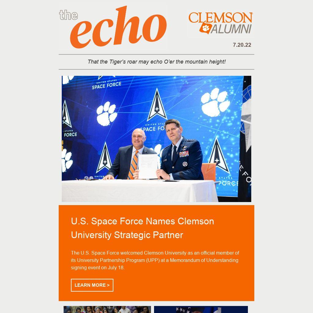 The U.S. Space Force welcomed Clemson University as an official member of its University Partnership Program (UPP) at a Memorandum of Understanding signing event on July 18.
