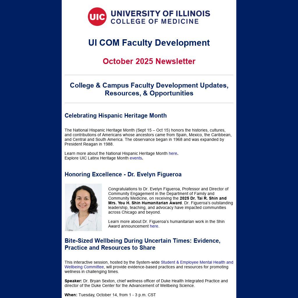 Contact: Rohan Verma, Program Coordinator UICOM Office of Faculty Development, rverma26@uic.edu or Dr. Memoona Hasnain, Associate Dean for Faculty Development, memoona@uic.edu.