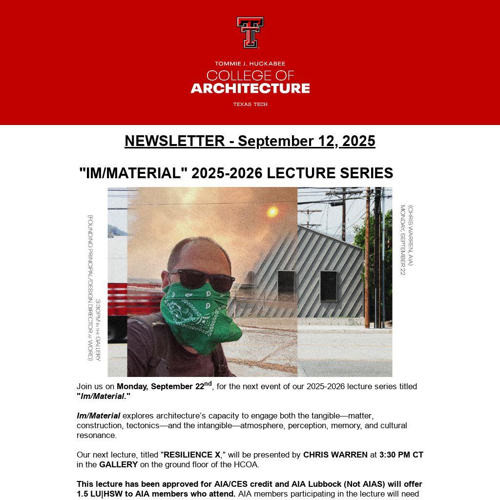 If you're not already, follow us on Instagram, X, and Facebook for the latest updates from the HCOA and be sure to like and share our content within your own networks! Do you have news or updates to share? Email architecture.communications@ttu.edu for a possible feature in the next newsletter!