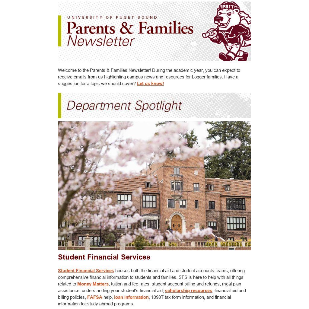 Welcome to the Parents & Families Newsletter! During the academic year, you can expect to receive emails from us highlighting campus news and resources for Logger families. Have a suggestion for a topic we should cover? Let us know!