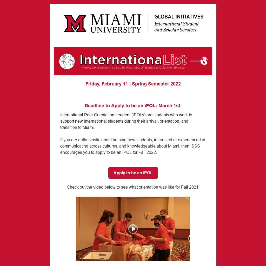 If you are enthusiastic about helping new students, interested or experienced in communicating across cultures, and knowledgeable about Miami, then ISSS encourages you to apply to be an iPOL for Fall 2022.