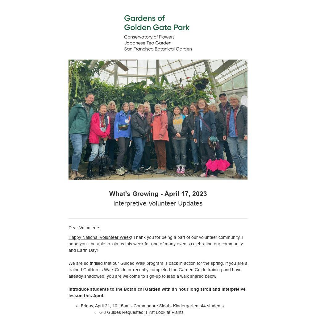 | What's Growing - April 17, 2023Interpretive Volunteer Updates