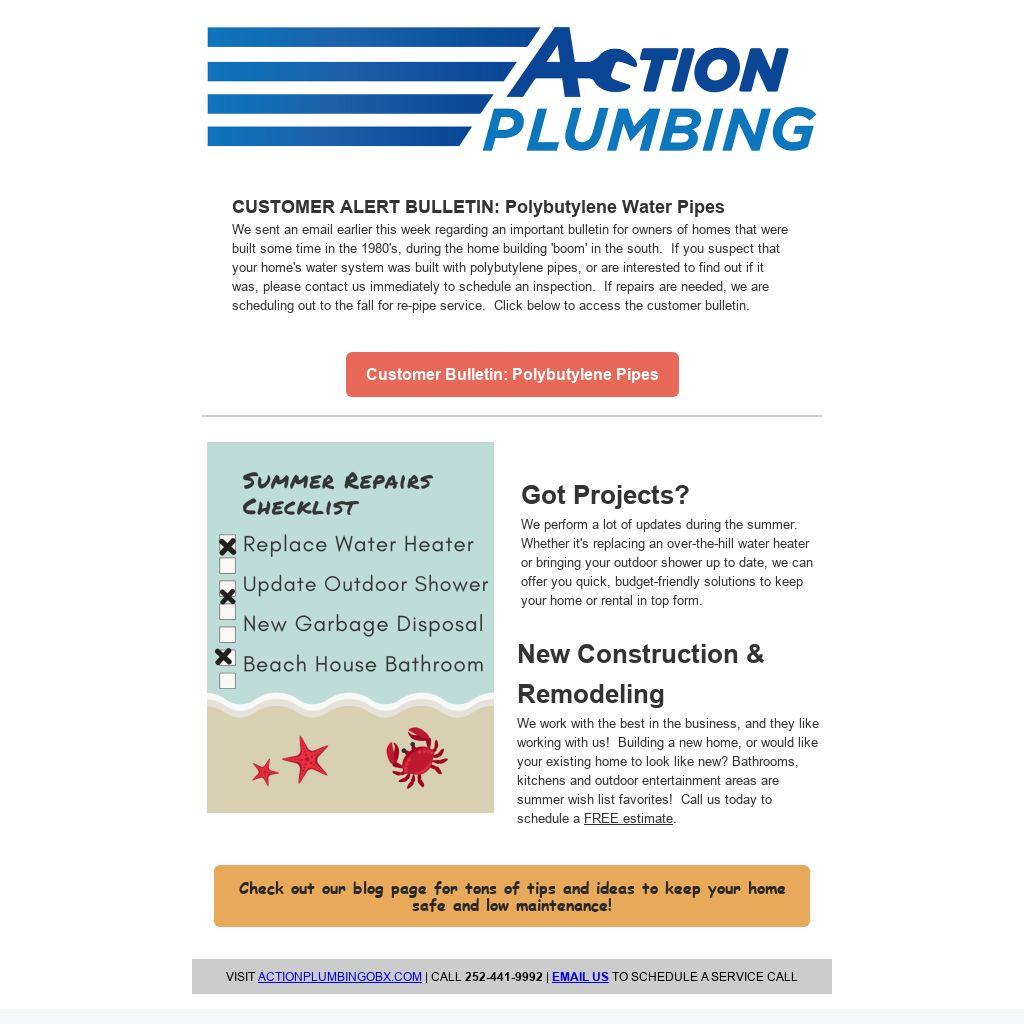 We sent an email earlier this week regarding an important bulletin for owners of homes that were built some time in the 1980's, during the home building 'boom' in the south. If you suspect that your home's water system was built with polybutylene pipes, or are interested to find out if it was, please contact us immediately to schedule an inspection. If repairs are needed, we are scheduling out to the fall for re-pipe service. Click below to access the customer bulletin.