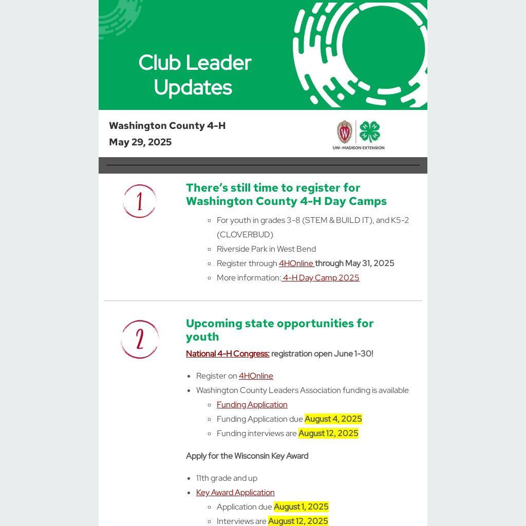 - More information: 4-H Day Camp 2025