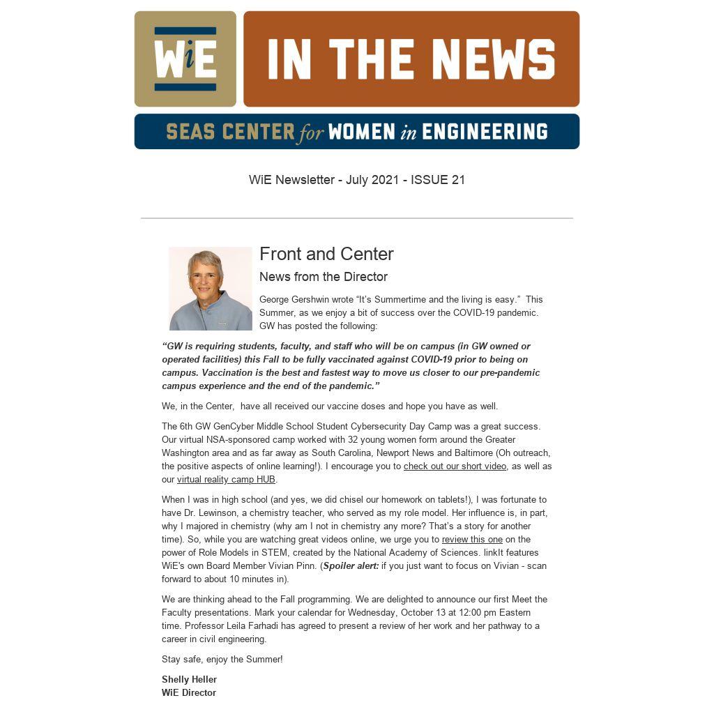 We are thinking ahead to the Fall programming. We are delighted to announce our first Meet the Faculty presentations. Mark your calendar for Wednesday, October 13 at 12:00 pm Eastern time. Professor Leila Farhadi has agreed to present a review of her work and her pathway to a career in civil engineering.