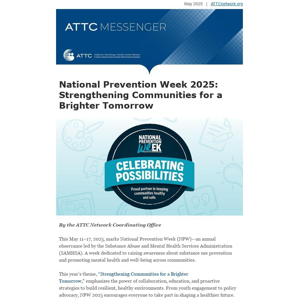 The ATTC Messenger is a monthly e-newsletter published by the ATTC Network Coordinating Office.