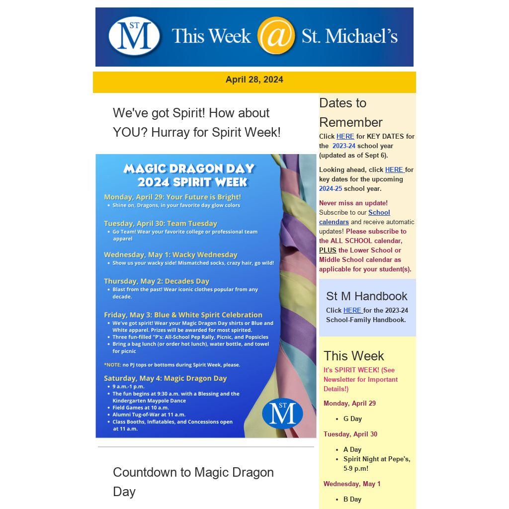 Every FRIDAY is DRAGON DRESS DAY! Wear St M spiritwear or blue/white with pride!