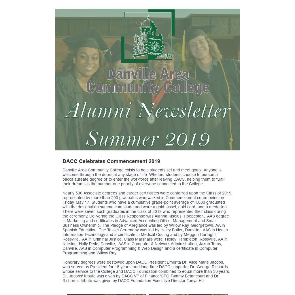 The DACC Alumni Association was formed to assist in advancing the mission of Danville Area Community College.The Association maintains a continuing relationship between alumni and the college and strengthens the relationship between the College and the community.