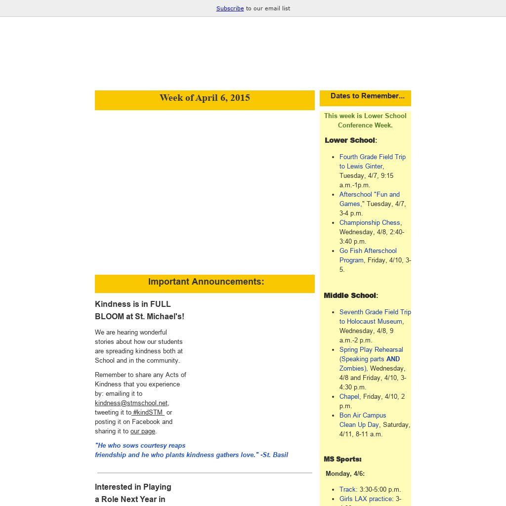 Get connected to keep abreast of St M news, events, calendar changes and information. Current and past issues of "This Week at St. Michael's" are now archived on our website under "News and Events," as well as under "Community."