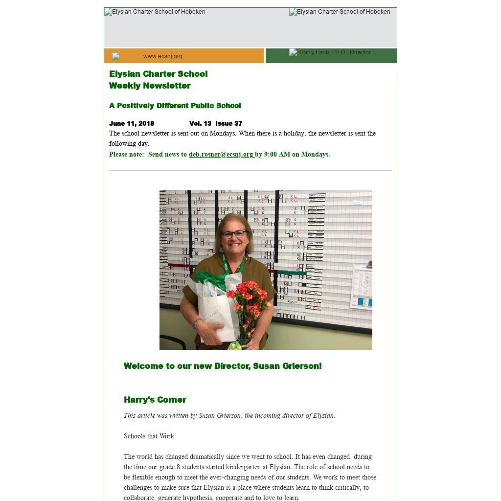 The school newsletter is sent out on Mondays. When there is a holiday, the newsletter is sent the following day.