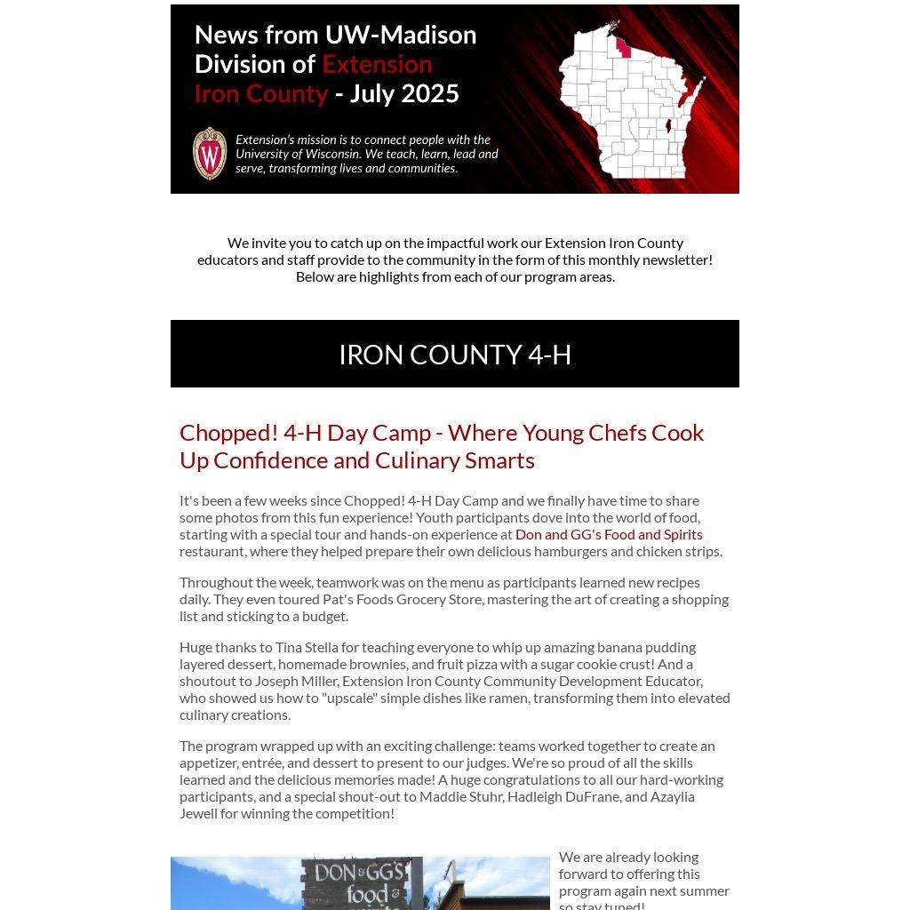 We invite you to catch up on the impactful work our Extension Iron County educators and staff provide to the community in the form of this monthly newsletter! Below are highlights from each of our program areas.