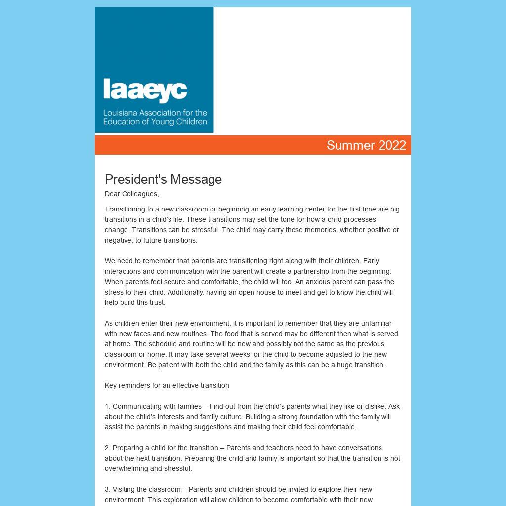 The Louisiana Policy Institute for Children is a nonpartisan, independent source of data, research, and pertinent information for policymakers, stakeholders, and the public at large around issues related to children ages birth through four in Louisiana. LPIC serves as LAAEYC's advocacy partner.