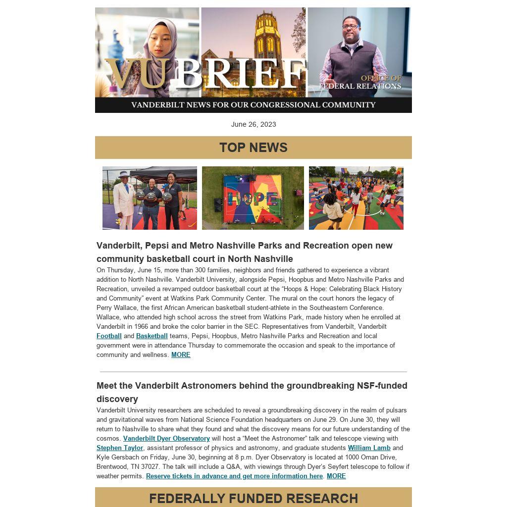 Vanderbilt, Pepsi and Metro Nashville Parks and Recreation open new community basketball court in North NashvilleOn Thursday, June 15, more than 300 families, neighbors and friends gathered to experience a vibrant addition to North Nashville. Vanderbilt University, alongside Pepsi, Hoopbus and Metro Nashville Parks and Recreation, unveiled a revamped outdoor basketball court at the “Hoops & Hope: Celebrating Black History and Community” event at Watkins Park Community Center. The mural on the court honors the legacy of Perry Wallace, the first African American basketball student-athlete in the Southeastern Conference. Wallace, who attended high school across the street from Watkins Park, made history when he enrolled at Vanderbilt in 1966 and broke the color barrier in the SEC. Representatives from Vanderbilt, Vanderbilt Football and Basketball teams, Pepsi, Hoopbus, Metro Nashville Parks and Recreation and local government were in attendance Thursday to commemorate the occasion and speak to the importance of community and wellness. MORE