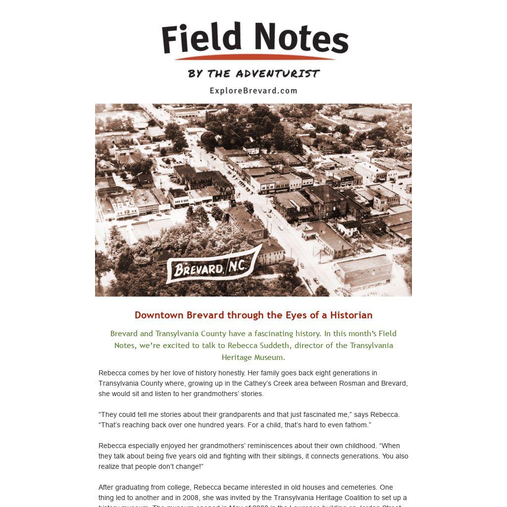 Brevard and Transylvania County have a fascinating history. In this month’s Field Notes, we’re excited to talk to Rebecca Suddeth, director of the Transylvania