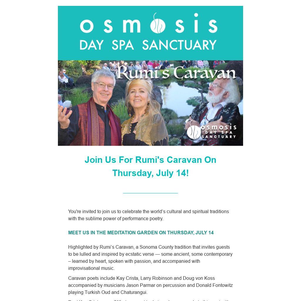 Highlighted by Rumi’s Caravan, a Sonoma County tradition that invites guests to be lulled and inspired by ecstatic verse — some ancient, some contemporary – learned by heart, spoken with passion, and accompanied with improvisational music.