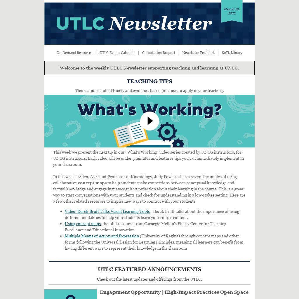 Welcome to the weekly UTLC Newsletter supporting teaching and learning at UNCG.