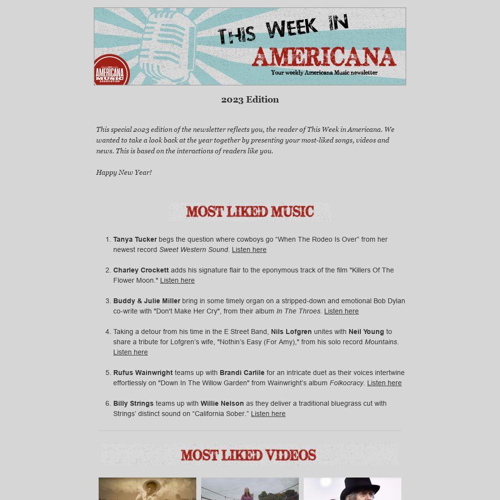 This special 2023 edition of the newsletter reflects you, the reader of This Week in Americana. We wanted to take a look back at the year together by presenting your most-liked songs, videos and news. This is based on the interactions of readers like you.