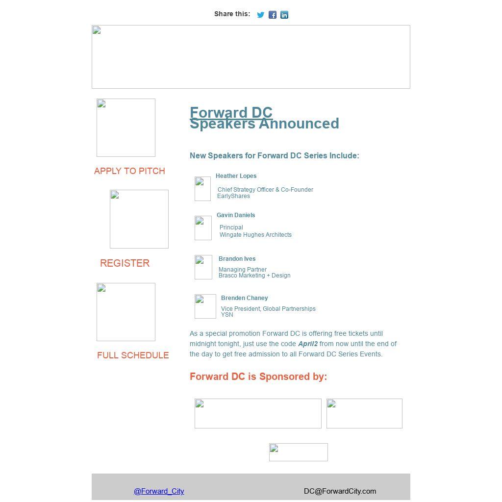 from now until the end of the day to get free admission to all Forward DC Series Events.