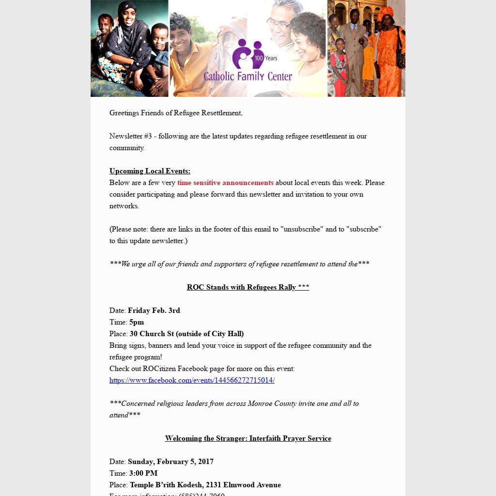 Newsletter #3 - following are the latest updates regarding refugee resettlement in our community.