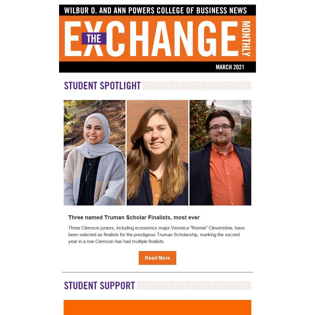Three Clemson juniors, including economics major Veronica "Ronnie" Clevenstine, have been selected as finalists for the prestigious Truman Scholarship, marking the second year in a row Clemson has had multiple finalists.