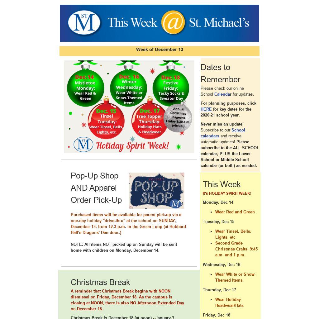 Current and past issues of "This Week at St. Michael's" are now archived on our website under "News and Events," as well as under "Community."