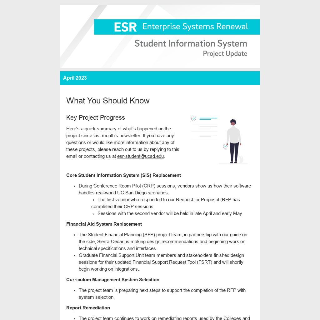 Want to learn more about any of the work happening for the SIS Project? We'll offer town halls for the Core SIS Project and the Oracle SFP Project soon, dates to be confirmed.