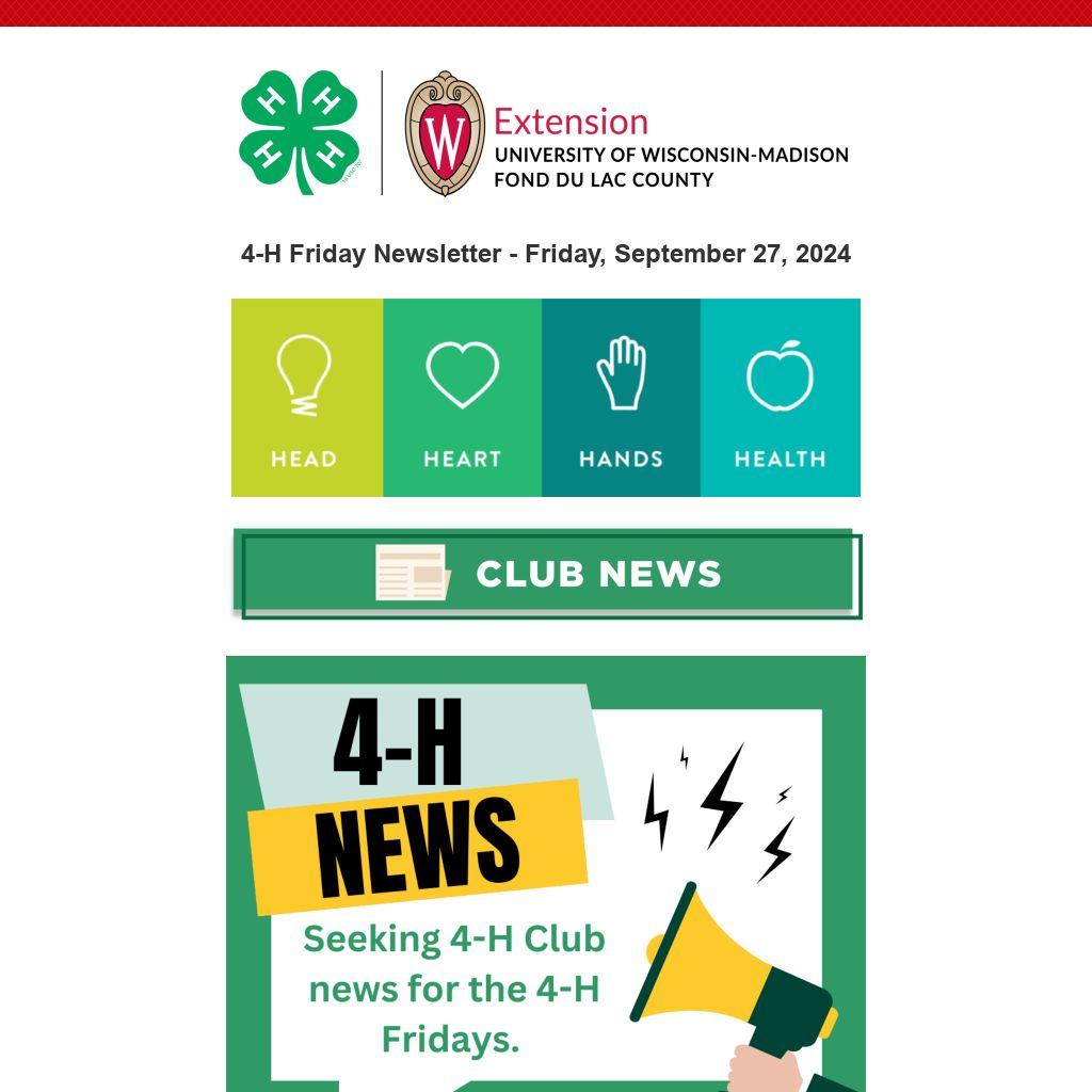 4-H Friday Newsletter - Friday, September 27, 2024