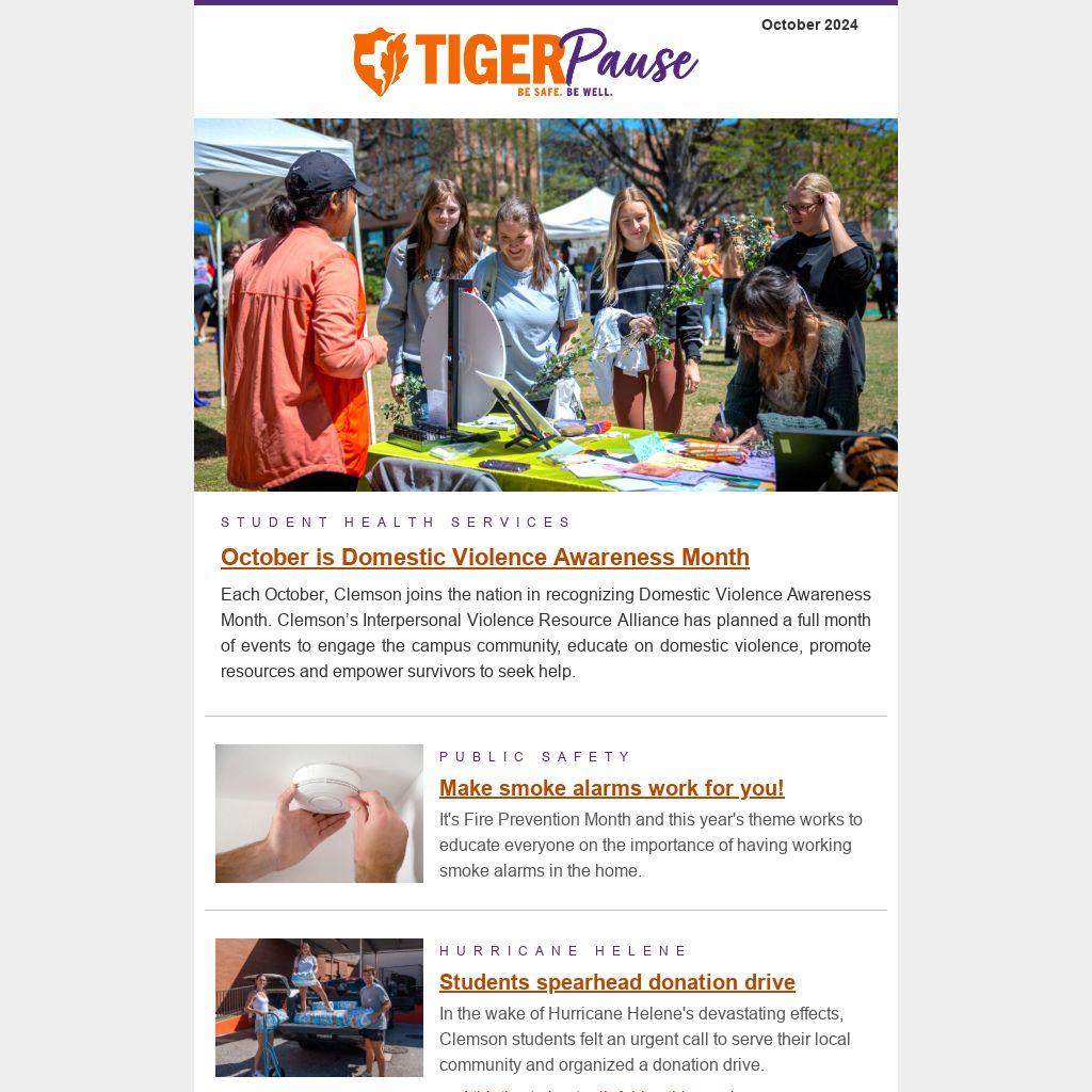 Each October, Clemson joins the nation in recognizing Domestic Violence Awareness Month. Clemson’s Interpersonal Violence Resource Alliance has planned a full month of events to engage the campus community, educate on domestic violence, promote resources and empower survivors to seek help.