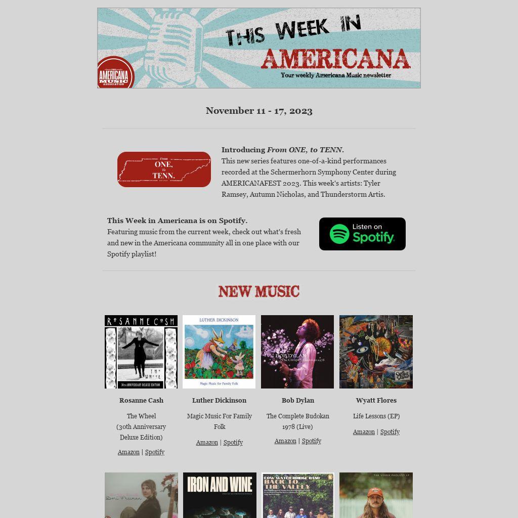 This Week in Americana is on Spotify. Featuring music from the current week, check out what's fresh and new in the Americana community all in one place with our Spotify playlist!