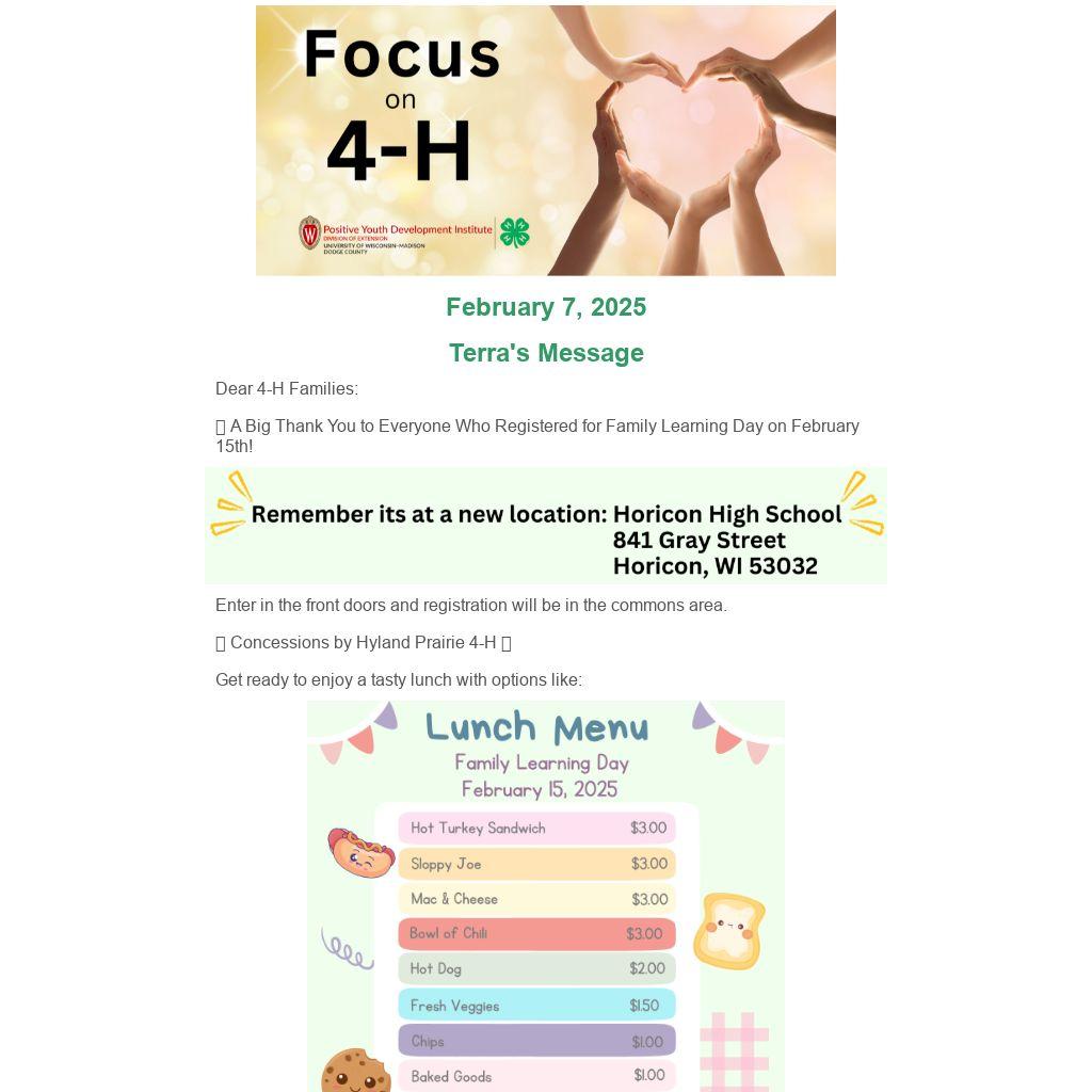When you come to Family Learning Day at Horicon High School next week, remember to bring cash for your lunch and also for any t-shirts or 4-H merch you may want to buy!
